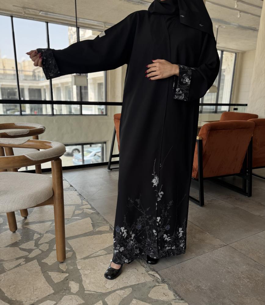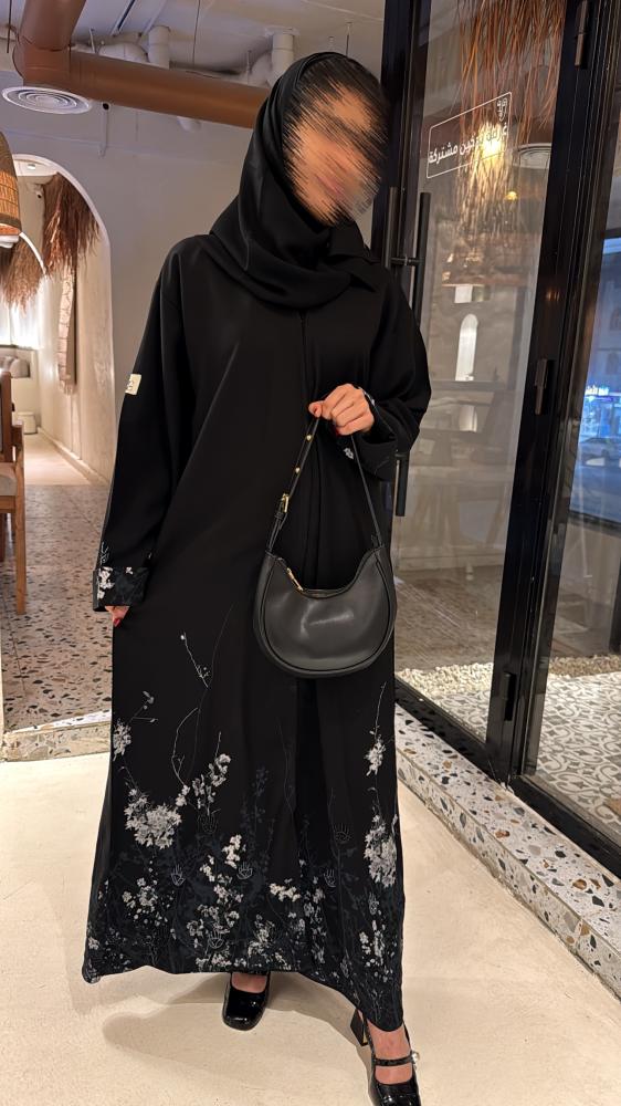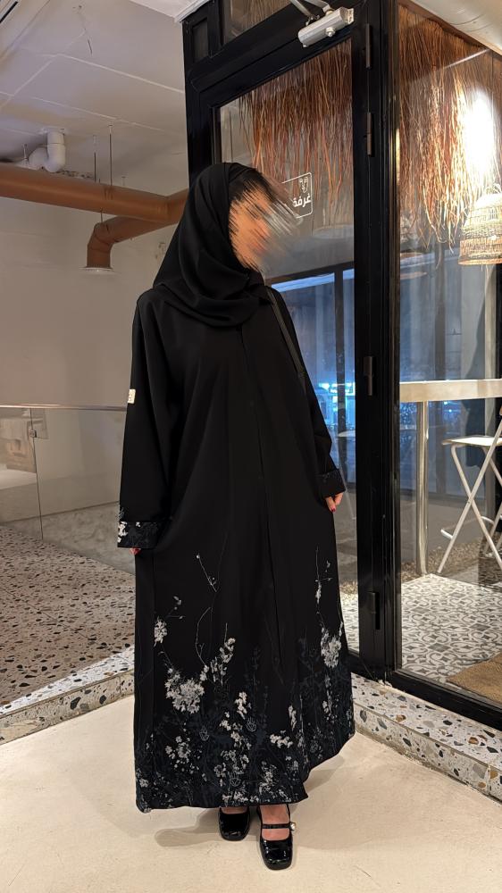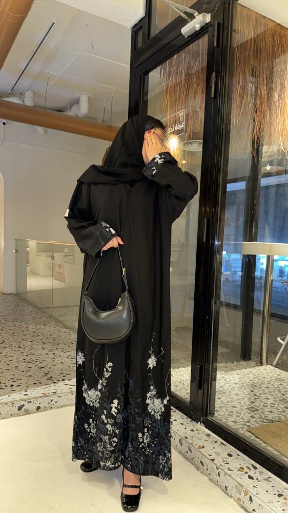 عباية راقية مصنوعة من قماش الكريب كتان واقف وبسواد فاحم ، بتصميم كلاسيكي أنيق. تتزين بورود قماشية ثلاثية الأبعاد موزعة على الأكمام وحواف العباية السفلية، تضيف لمسة أنثوية ناعمة. وتكتمل فخامة التصميم بتفاصيل من الخرز اللامع المضاف بتفاصيل ناعمة على الأكمام وأسفل العباية، مما يمنحها لمعة فاخرة وجاذبية خاصة. العباية مزيج مثالي بين النعومة والرقي، مناسبة للمناسبات والمشاوير المميزة.